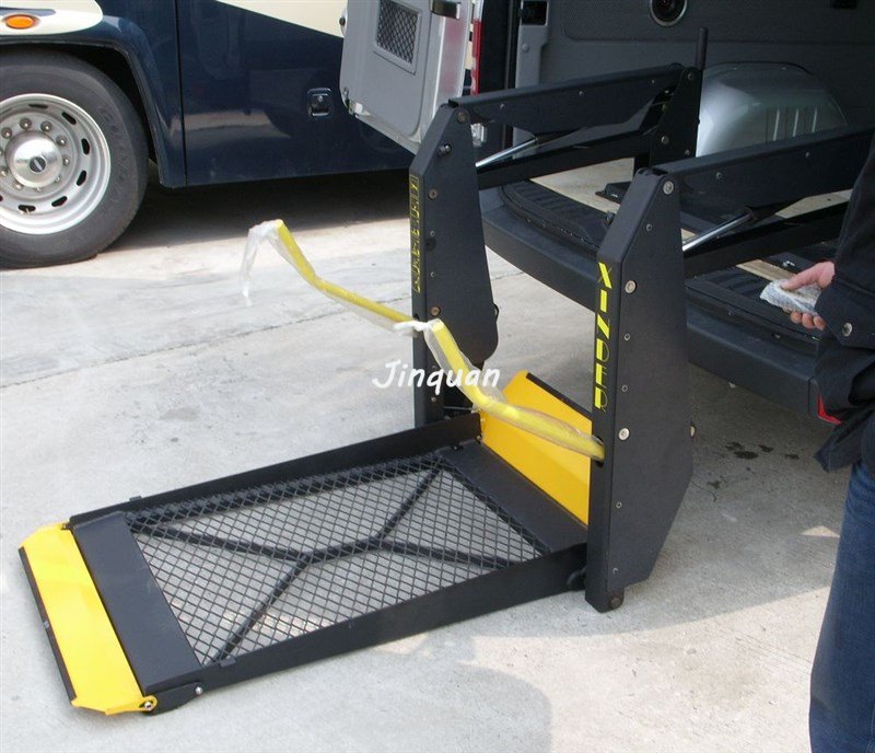 商務車載型無障礙升降平臺采用鋼結構平行四邊形結構,液壓驅動,結構新穎,外型美觀,適用于多種類型車輛。平臺前后各裝有安全翻板以防輪椅車在提升過程中滑落,平臺設有線控按鈕,便于使用者方便操作,在汽車內部裝有手動控制手柄,在升降平臺斷電或電控故障時通過手柄人工機械操作平臺升降。設備收藏于車廂尾部,體積小,不影響車輛使用.本產品結構新穎,外形美觀,適用于多類型的商務車、面包車、輕客等。