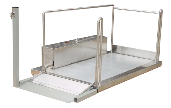 無障礙升降平臺采用剪叉式升降機構,液壓驅動,升降平穩安全,外部采用拉絲不銹鋼材料和鋁板靜電噴塑機箱/面板,外形小巧美觀,不阻礙周邊環境。設備直接安裝于地面,無需土建配套地坑,施工簡便,產品放置戶外不易積水,不易生銹,維護簡便。設備采用直流電源,折疊式防護罩。安全觸板等安全防護設施,操作簡單安全性能高等優點。適用于新建高檔社區,醫院,學校,酒店,公共場所等地。