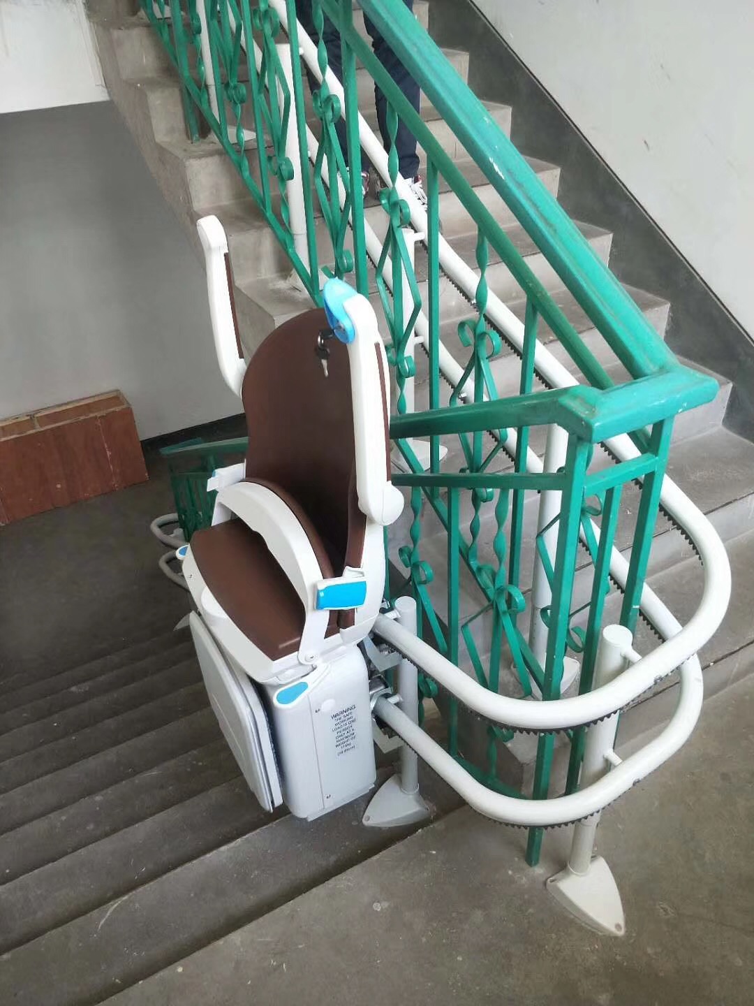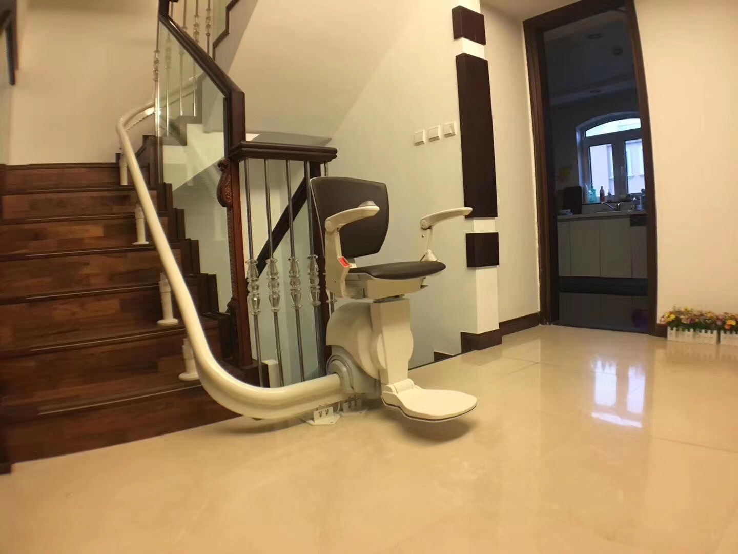 ③曲線單軌型 適用于具有多層或者曲線型較寬的樓道,要求樓道寬度900mm以上軌道最小轉(zhuǎn)彎直徑360mm,椅子寬大。
