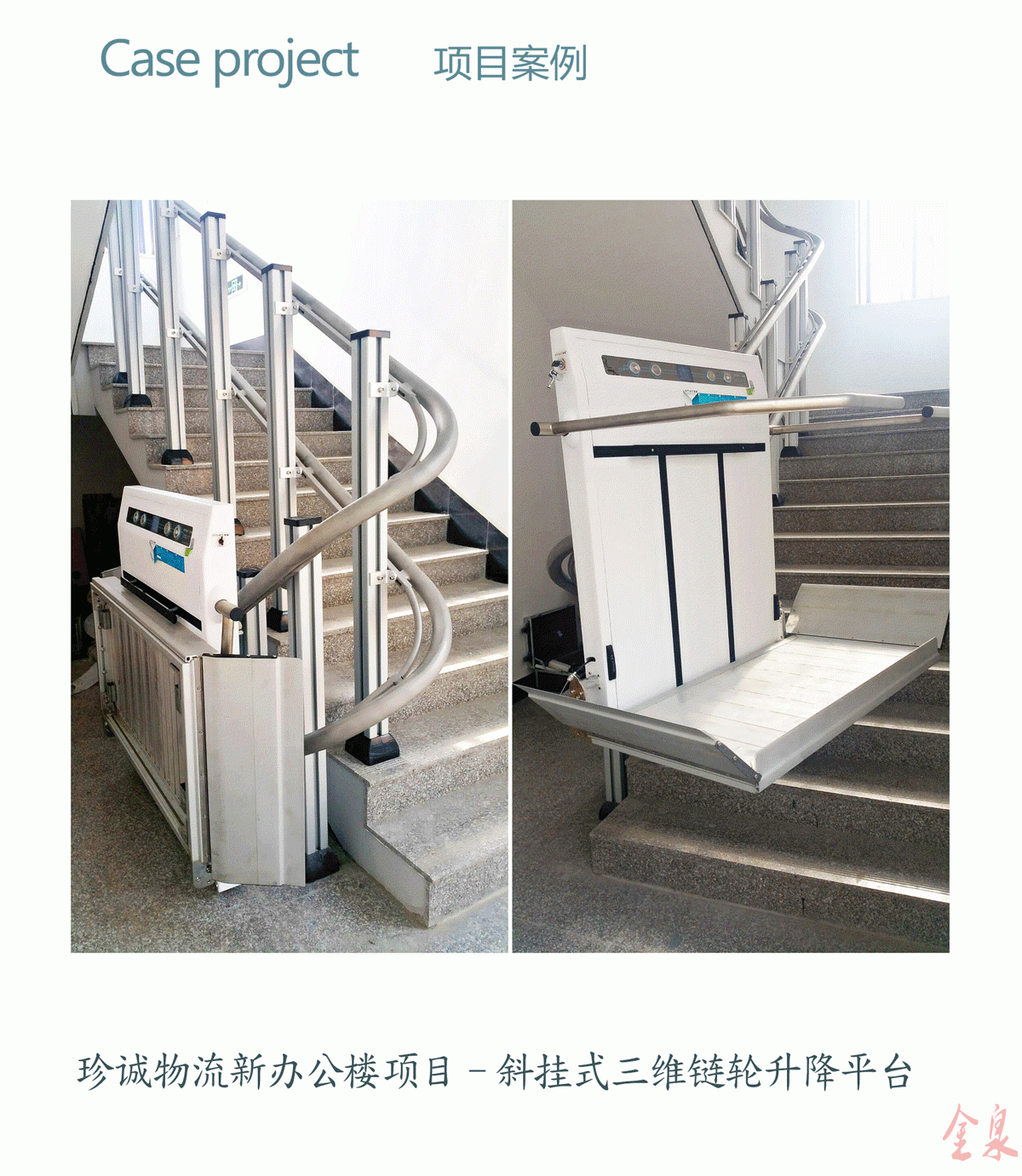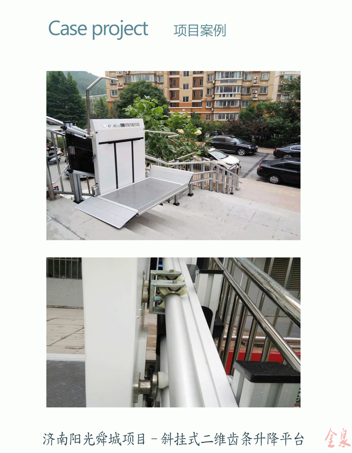 傾斜式無障礙升降平臺可安裝在室內(nèi)和室外,可安裝在大型公共場所,如療養(yǎng)院,學(xué)校,餐廳,酒店,機(jī)場,地鐵,商場等。我們的斜掛式無障礙升降機(jī)平臺使用根據(jù)樓梯形狀設(shè)計的高精度導(dǎo)軌,可應(yīng)用于直線,弧形,螺旋形樓梯。