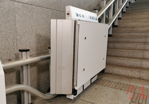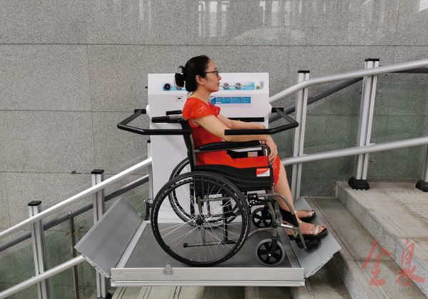 全自動折疊系統(tǒng),任何形變運行過程無需人為干預,鏈輪驅(qū)動斜掛式輪椅升降平臺不用時可折疊放置,不占樓道空間。