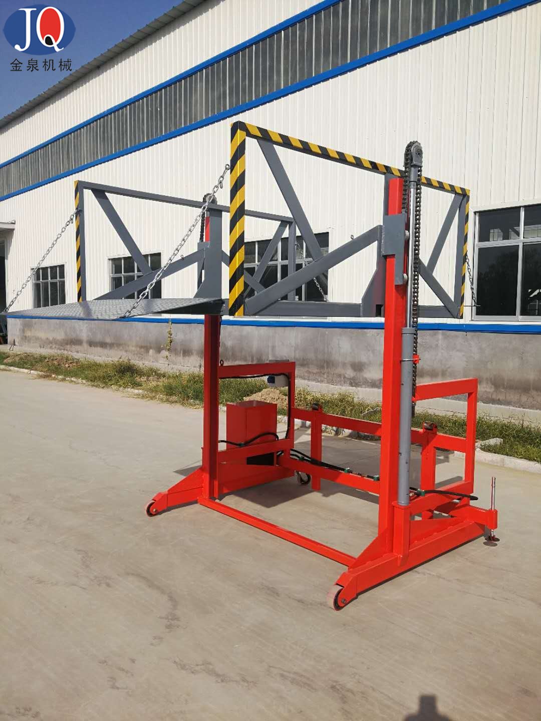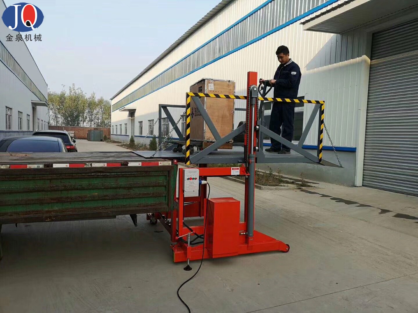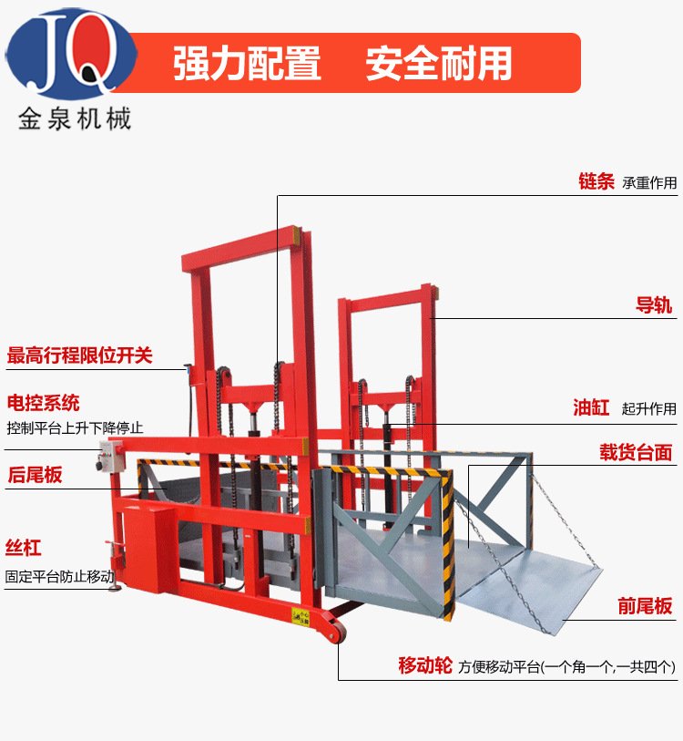 6.液壓系統(tǒng)及電器控制系統(tǒng)安裝在該設備側面,便于維修及預防車輛在裝載貨物倒車時頂撞到該電控箱;